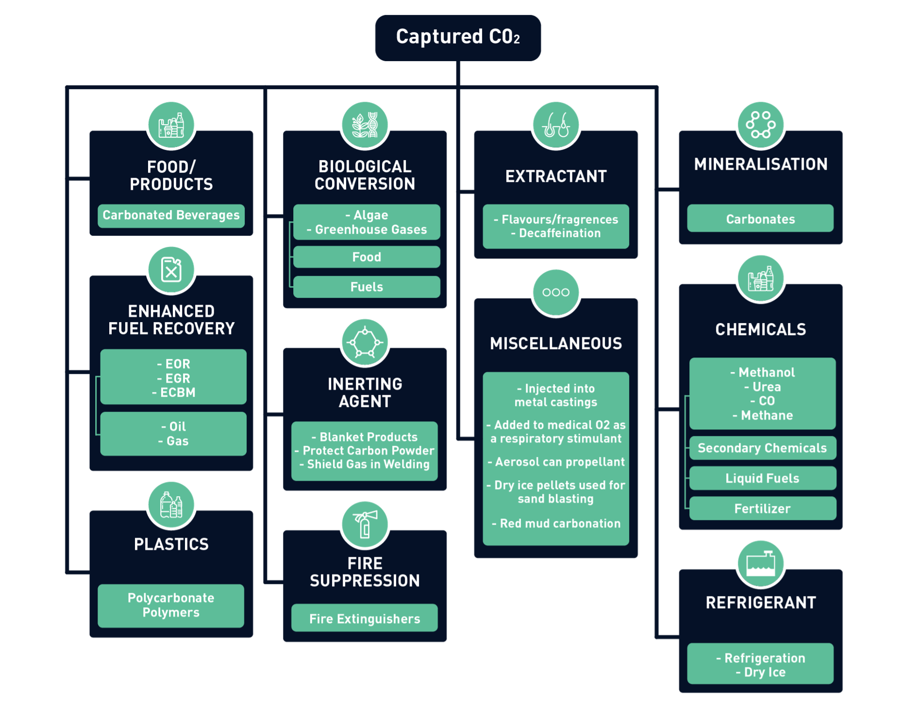 Construction – CO2 is used for building materials and enhanced oil recovery (EOR).